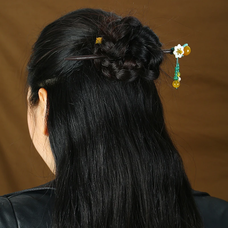 Wholesale Fashion Handmade Wood Hair Pin Hair Sticks Women S Flower Bead Tassel Hairpin Accessories Chinese Style From M Alibaba Com